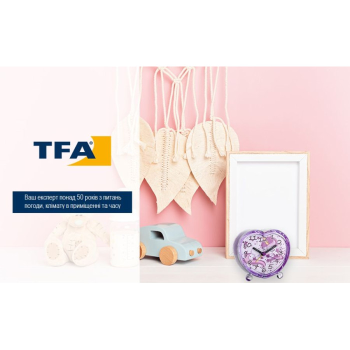 Особливості: Аналоговий дисплей Тихий механізм "Sweep" Принт "єдиноріг" Великі цифри, які легко читаються Простота в експлуатації Підсвічування Для дітей старше 3-х років Зареєстрований дизайн TFA