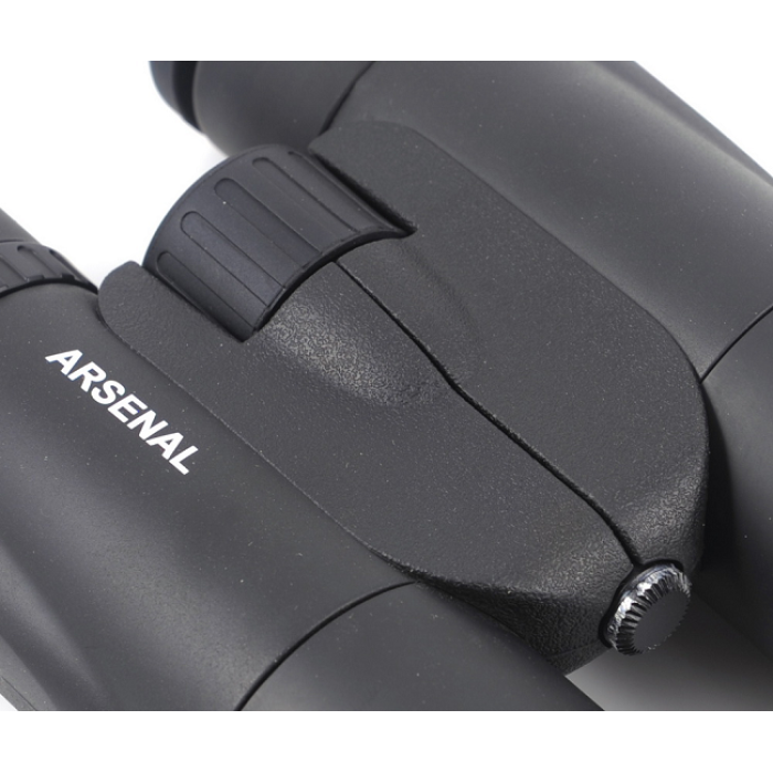 Бінокль Arsenal 8x42 (DY-842) має водонепроникний, азотонаповнений корпус з міцного полікарбонату, армованого скловолокном. Можливо тривале перебування бінокля під дощем, снігом або в умовах підвищеної вологості. Зверху корпус покритий гумовим шаром, що підвищує ударостійкість бінокля. Лінзи, які мають повне загальне мультипросвітлююче покриття, а також призми з фазовою корекцією і напиленням срібла, забезпечать чітке, контрастне і яскраве зображення. Винесена окулярна точка і поворотно-висувні наочники дозволяють вести спостереження, не знімаючи окулярів. Захисні кришки для окулярів прикріплені до об'єктивів. Бінокль має великий барабан центрального фокусування, що забезпечує плавне й точне налаштування, а також діоптричне налаштування правого окуляру для точної відповідності індивідуальним особливостям зору. Гумове покриття корпусу зі спеціальними виїмками для пальців створює комфортність спостережень і надійність при втриманні бінокля у руках. Лінзи та призми бінокля виготовлені зі скла, що не містить домішок свинцю і миш'яку і безпечні для навколишнього середовища.