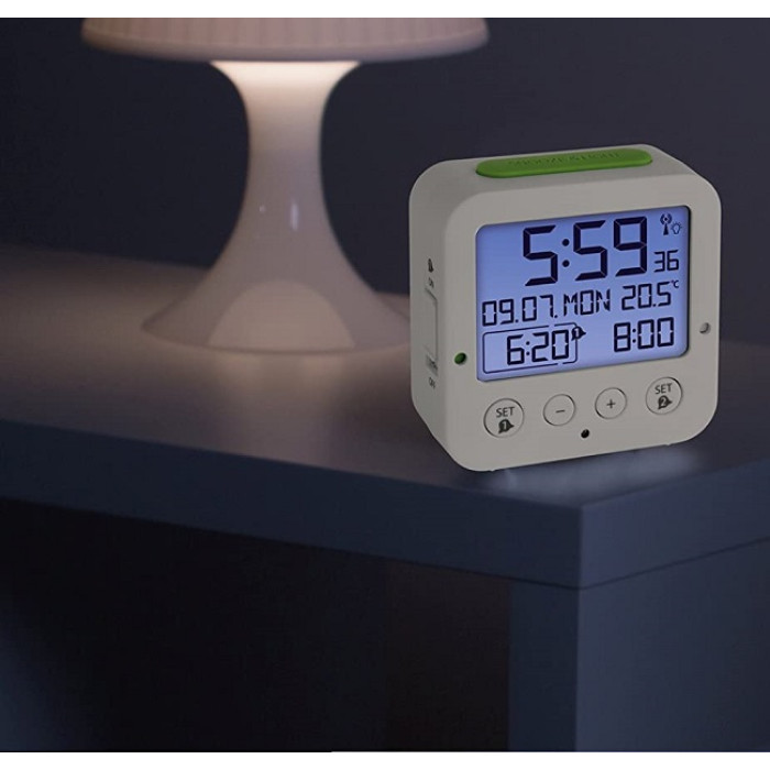 Будильник має ненав'язливе і економічне світлодіодне підсвічування, яке