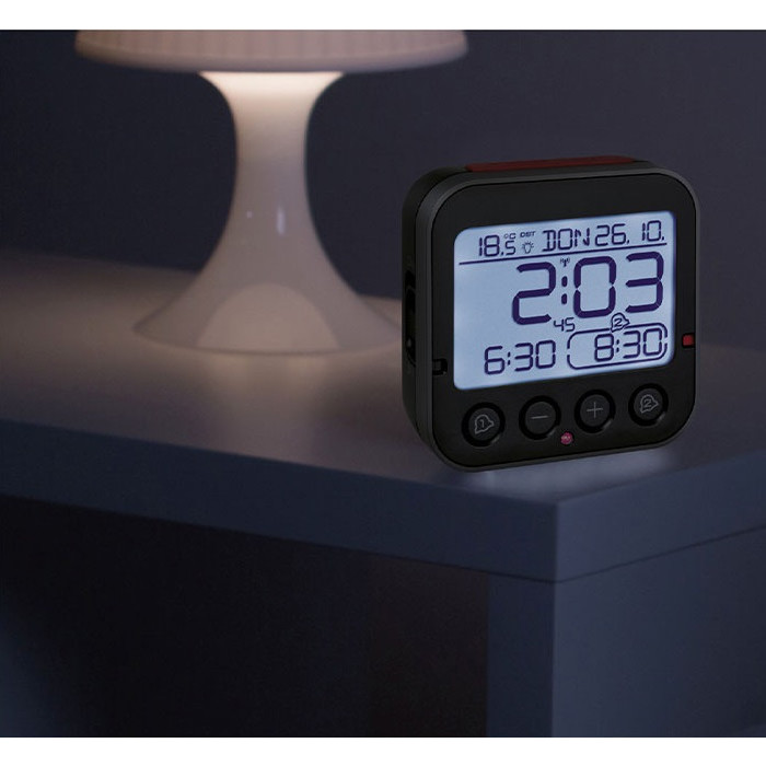 вбудований датчик освітлення. Два часу будильника з різними звуковими