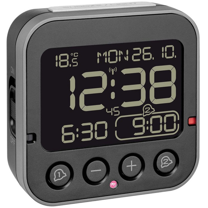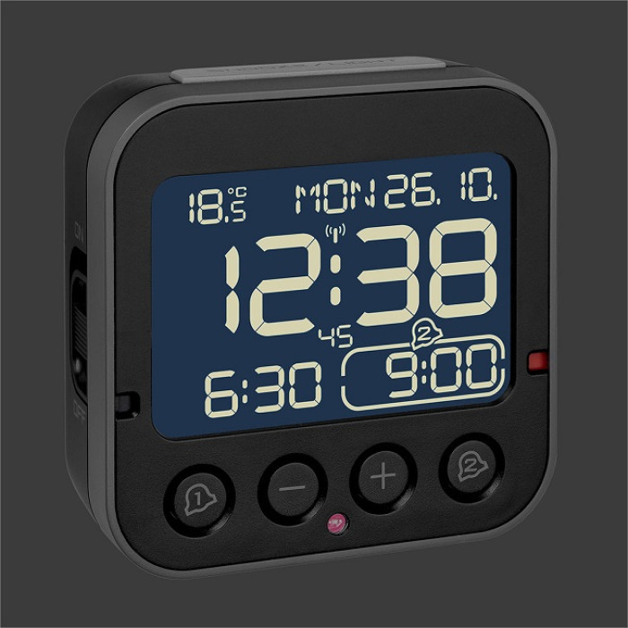 вбудований датчик освітлення. Два часу будильника з різними звуковими