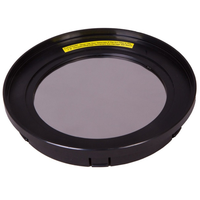 Сонячний фільтр Arsenal 114 мм для рефлекторів (2707 AR) необхідний для захисту зору при вивченні сонячної активності через телескоп. Він зроблений зі спеціальної захисної плівки, яка блокує шкідливе для очей випромінювання і пропускає тільки безпечний світ. Коефіцієнт світлопропускання становить всього 0,001%. Колір Сонця при спостереженнях - білий. Використовуючи сонячний фільтр, на Сонце можна побачити безліч цікавого: грануляцію, сонячні плями, факельні поля. Крім того, він допоможе в спостереженнях транзитів планет по сонячному диску і сонячних затемнень. Світлофільтр розроблений спеціально для рефлекторів з апертурою 114 мм.