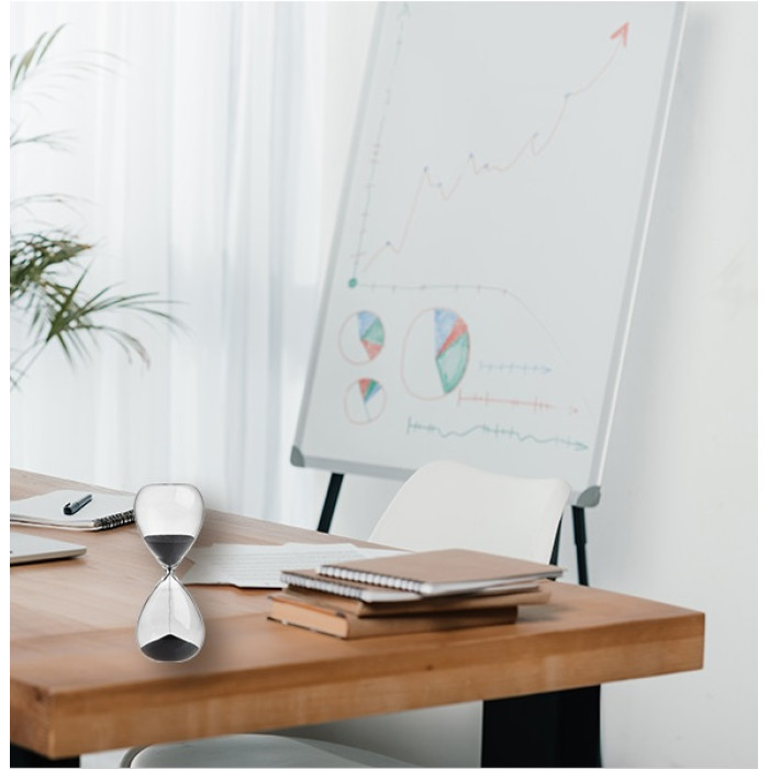 М'які круглі форми зі скла у поєднанні з дрібним струмком піску роблять пісочний годинник справжнім предметом дизайну. Таким чином, ваш новий пісочний годинник може бути скоординований з іншими домашніми аксесуарами і стане абсолютним видовищем у вашій вітальні або офісі.