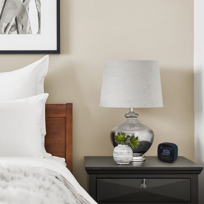 Завдяки матовому лакованому корпусу і сучасній округлій формі він чудово виглядає на будь-якому столику. Ви можете використовувати будильник як від мережі, так і вбудованого акумулятора.