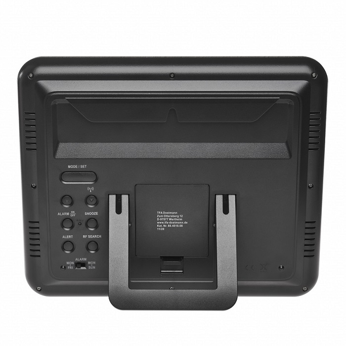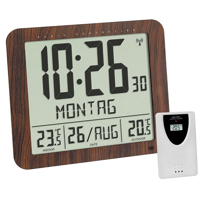Крім дати, на чіткому дисплеї відображаються день тижня, температура у приміщенні та на вулиці. Розмістіть датчик, що додається, зовні, щоб визначити зовнішню температуру. Потім значення передаються радіосигналом на радіокерований годинник з радіусом дії до 70 м. Відмінна додаткова функція: можна налаштувати температурну сигналізацію, щоб звуковий сигнал звучав, наприклад, у разі морозу або дуже високих температур. Цей практичний пристрій також можна використовувати як будильник.