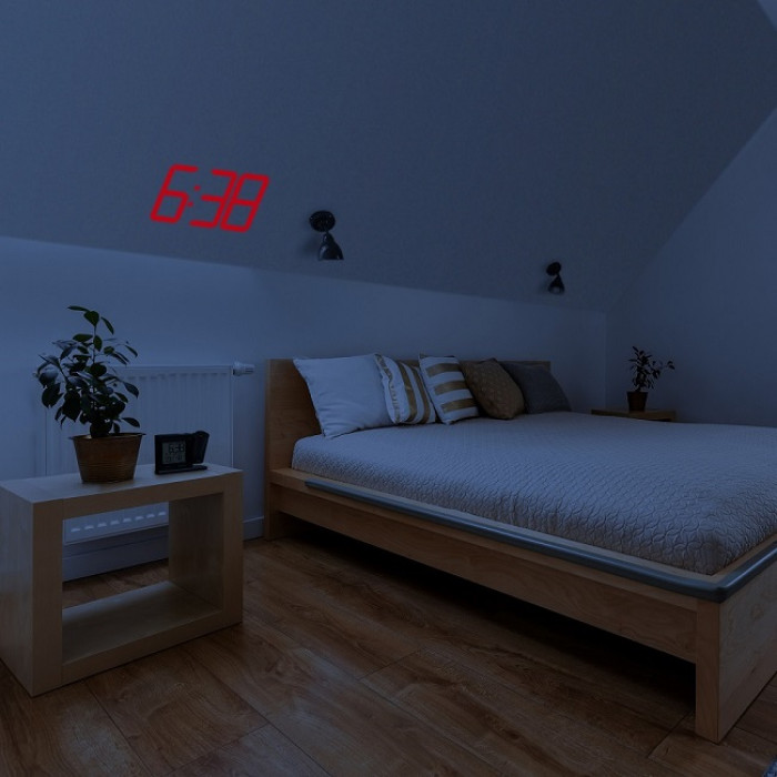 Просто переверніться ще раз… Ранок був би таким розслабленим, якби вам було легше вставати з ліжка. Ми не можемо вам цього обіцяти, але намагатимемося полегшити вам завдання за допомогою цього проекційного будильника. Принаймні, ви можете зручно читати час зі стіни або стелі вашої кімнати, лежачи, і бачити, коли справді час вставати.