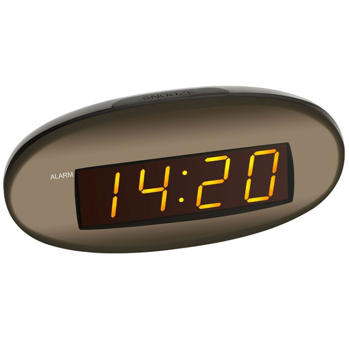 Особливості: Великі помаранчеві світлодіодні цифри Будильник із функцією повтору Адаптер живлення у комплекті