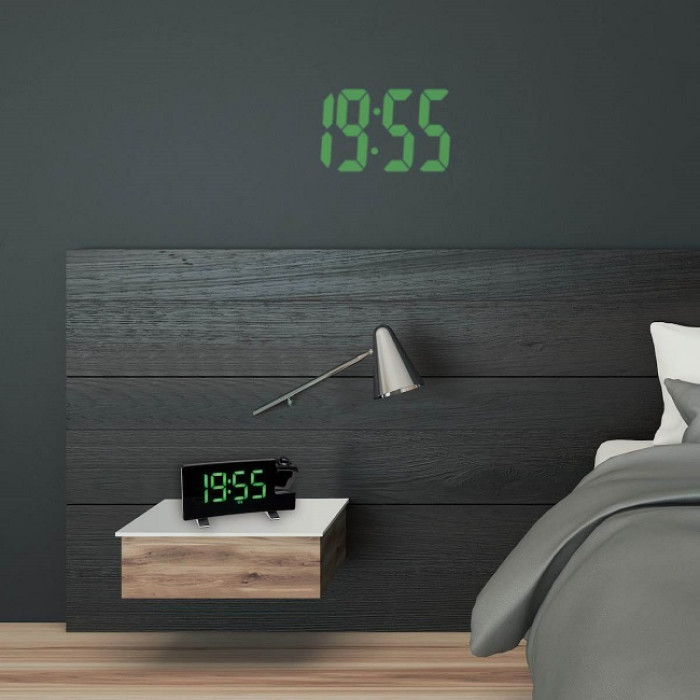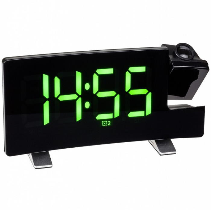 Для багатьох людей прокидатися під улюблену радіостанцію - кращий спосіб почати день в гарному настрої. А цей сучасний радіо-будильник незвичайної форми може запропонувати ще більше. Ви можете легко дізнатися час вночі, не повертаючи голову до будильника, тому що час проектується на стіну або стелю вашої спальні цифрами, що світяться (з можливістю регулювання 2 рівнями яскравості). Цифри часу також виглядають дуже великими і безрамковими на зігнутому дисплеї. Дисплей можна регулювати за трьома рівнями яскравості, автоматично зменшувати яскравість вночі за допомогою датчика освітленості або повністю вимикати.