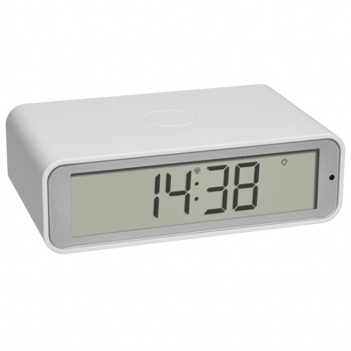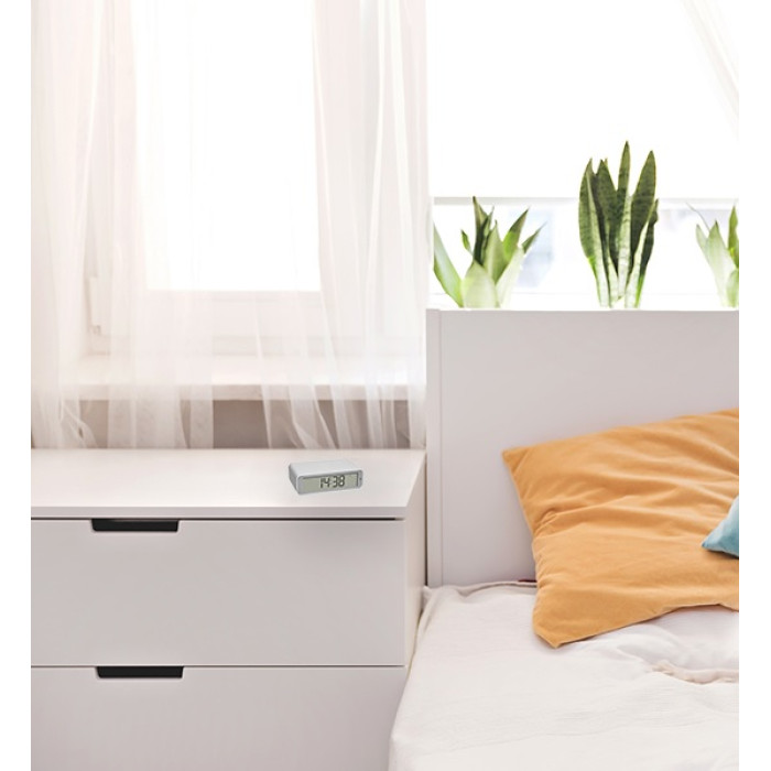 Стильний радіокерований будильник TWIST вражає своїм простим дизайном, доступний у кількох кольорах, простий та інтуїтивно зрозумілий у використанні. Щоб увімкнути або вимкнути будильник, просто поверніть годинник на 180 градусів. Дисплей обертається разом із ним. Завдяки оксамитовій прогумованій поверхні будильник зручно лежить у руці. З першого погляду видно, встановлена сигналізація чи ні. Якщо будильник активний, встановлений час будильника з'являється праворуч. Функцію повтору та підсвічування дисплея можна активувати за допомогою великої сенсорної кнопки вгорі. При увімкненні дисплей стає темним, а цифри яскраво світяться на чорному тлі протягом п'яти хвилин. Якщо ви хочете мати можливість читати час у темряві, ви можете включити тонке нічне підсвічування, яке включається автоматично, коли стає темно, за допомогою датчика освітлення.