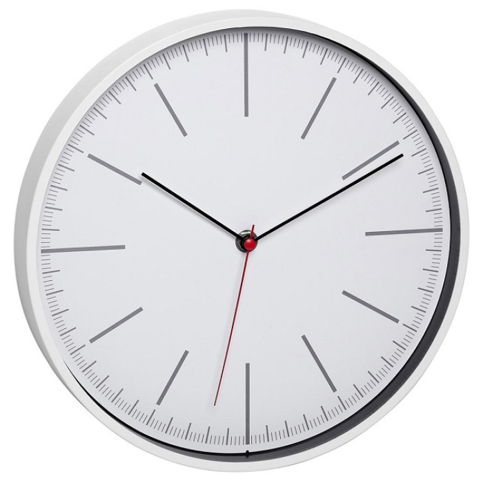 візуально доповнить приміщення. Червона секундна стрілка виділяється над білим тлом. Завдяки детальній шкалі циферблату час може бути зчитаний з
