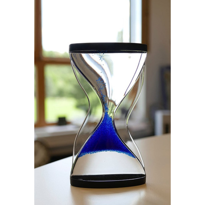Особливості: Корпус з акрилового скла з маленькими пластиковими намистинками Маленькі пластикові намистинки рухаються знизу вгору Намистинки синього кольору Винятковий дизайн Тривалість: прибл. 10 хвилин Ідеально як прикраса або як подарунок