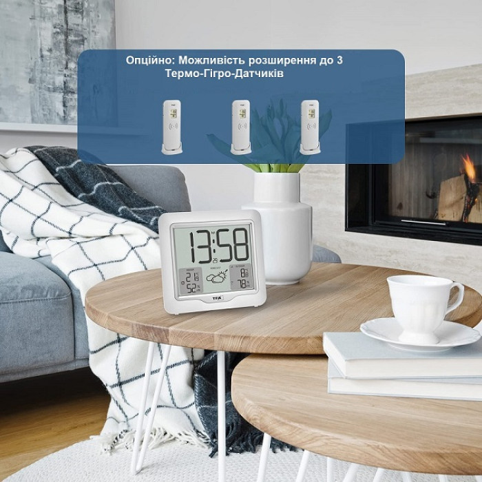 Чи хотіли б ви керувати кліматом в інших кімнатах? До станції можна додати 2 додаткові термо-гігро датчики. Вони доступні окремо.