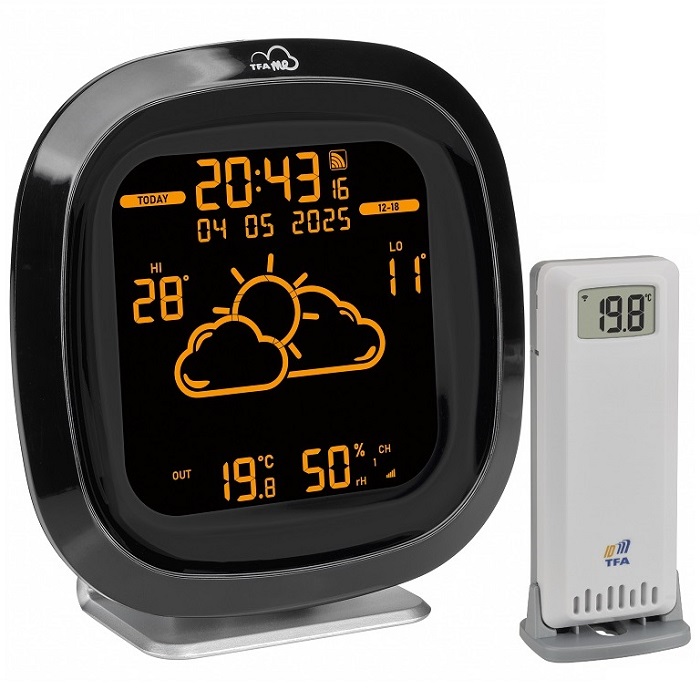 Станція має внутрішні датчики, які вимірюють температуру та вологість у приміщенні на місці встановлення. До п'яти безпровідних термогігропередавачів (один входить до комплекту) з радіусом дії до 100 метрів на відкритому просторі надають актуальні дані з вашого саду, гаража або дитячої кімнати. На додаток до можливості відображення на екрані максимум п'яти датчиків, які перемикаються натисканням кнопки або автоматично, станція може приймати численні інші передавачі для різних вимірюваних параметрів. Ви можете отримати доступ до них онлайн через портал TFA.me або отримати експорт даних на електронну пошту. Це, до речі, робить TFA.me ідеальною системою клімат-контролю для вашого будинку. У той же час, ви можете бути повідомлені електронною поштою, якщо визначені виміряні значення перевищені або не досягнуті. Ви також можете замовити ручний або автоматичний експорт виміряних значень на електронну пошту через портал TFA.me.