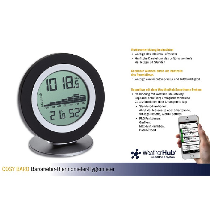 COSY BARO може бути підключений до системи WeatherHub SmartHome. Вам потрібен стартовий набір WeatherHub як основа