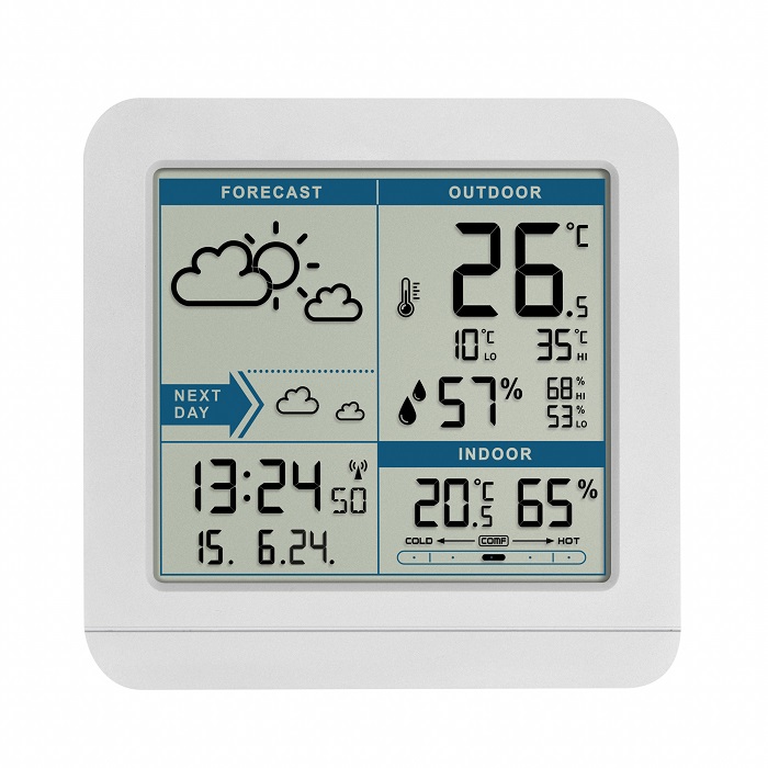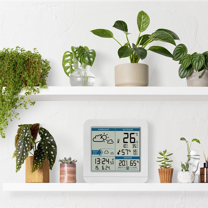 Вбудовані датчики базової станції вимірюють температуру і вологість в приміщенні і показують рівень комфортності повітря.