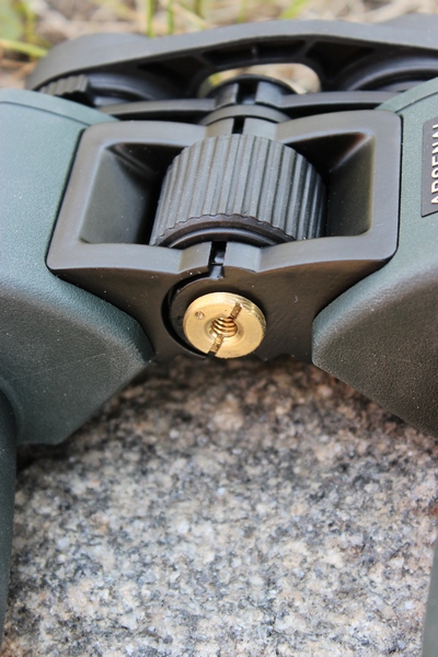 Для ведения стационарных наблюдений бинокль имеет гнездо крепления штативного L-адаптера, расположенное спереди центрального шарнира и закрытое пластиковой завинчивающейся крышечкой. Стоит особо отметить качество исполнения и удобство использования данного узла, так как многие производители довольно часто подходят к данному элементу конструкции весьма поверхностно. Инженерное же исполнение гнезда крепления L-адаптера в данном случае можно считать едва ли не эталонным.