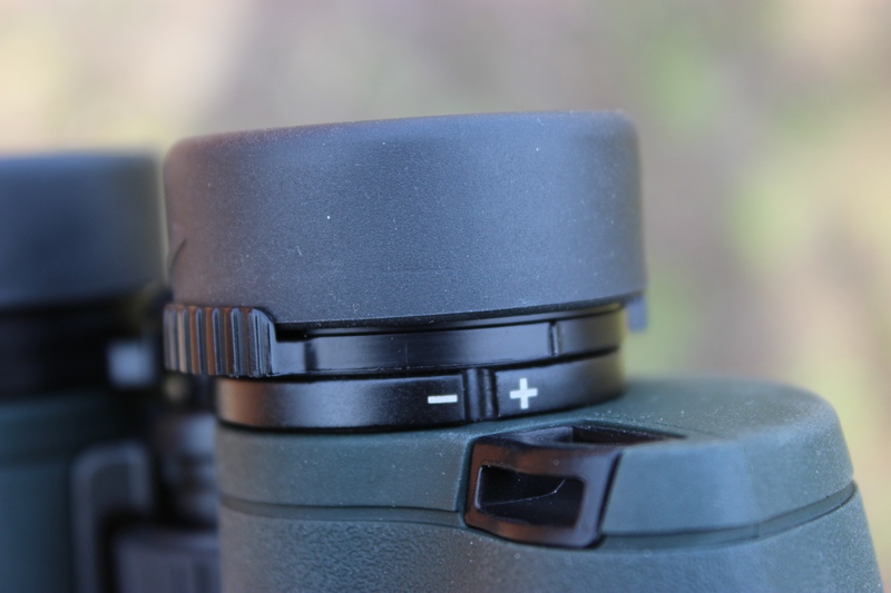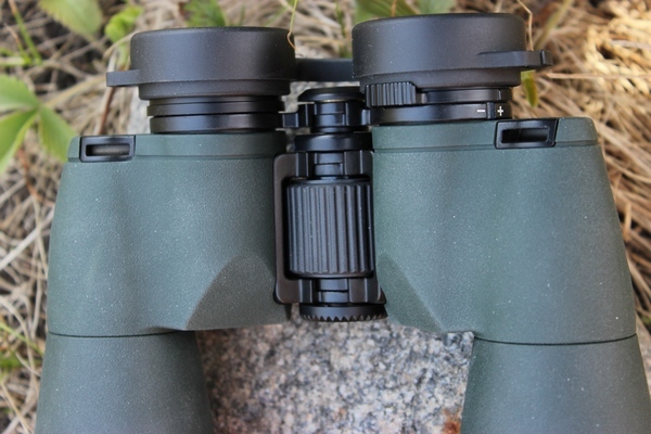 Фокусировка бинокля – центральная и осуществляется с помощью обрезиненного фокусировочного колесика диметром 33мм. Узел фокусировки расположен очень удачно и легкодоступен даже в перчатках. Ход узла плавный, мягкий и точный, «мертвый ход» отсутствует.
