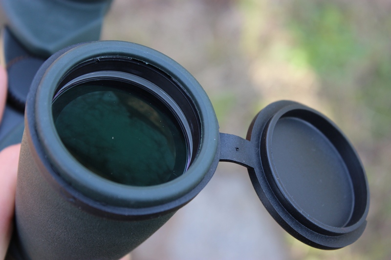 Объективы и окуляры бинокля защищены резиновыми крышечками. Крышка для окуляров сдвоенная и крепится на шейном ремешке с помощью специальных петель, одна из которых разрезная. Крышки на объективах крепятся к тубусам бинокля при помощи резиновых колец. Крышки прилегают плотно и держатся отлично.