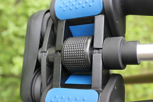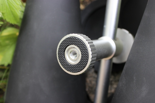 Для фиксации положения стойки используется специальный винт со шляпкой диаметром 43мм и накаткой. Центральная балка и стойка выполнены из алюминиевого сплава.