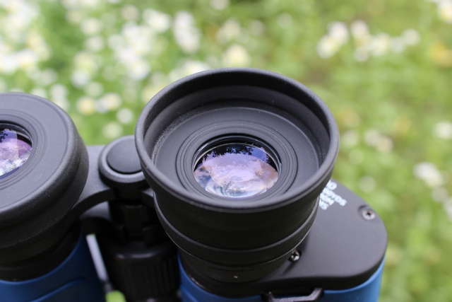 Окуляры бинокля широкоугольные (поле порядка 66 градусов), с хорошо вынесенным зрачком. Вынос зрачка составляет порядка 18 мм. Диаметр глазных линз окуляров 23 мм, а диаметр зрачка - порядка 4 мм. Надо сказать, что именно такой диаметр зрачка особенно подходит для астрономических наблюдений в условиях наличия засветки.