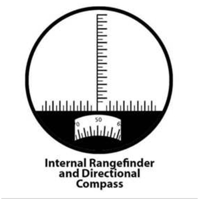 Если вы смотрите в бинокль, вы видите шкалу расстояний в центре. Эта функция предназначена для определения расстояния и размера объекта.