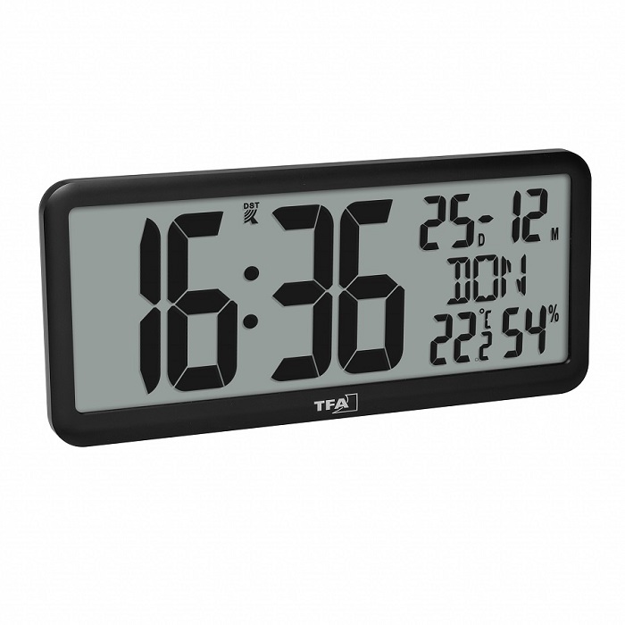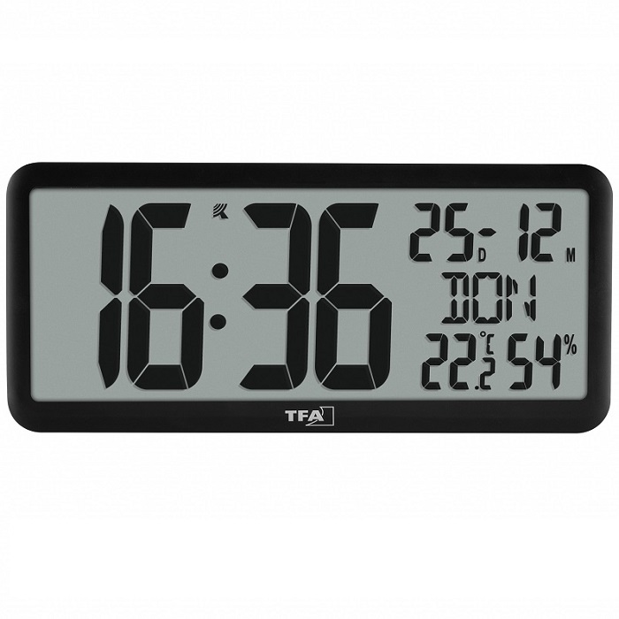Часы настенные цифровые TFA черный 356x27x161 мм (60452501)
