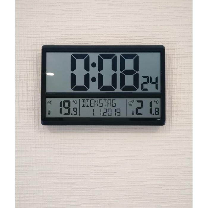 Особенностью этих часов является двойное отображение температуры в помещении и на улице. Небольшой передатчик, установленный на открытом воздухе, передает наружную температуру по радиосигналу на расстояние до 100 м.