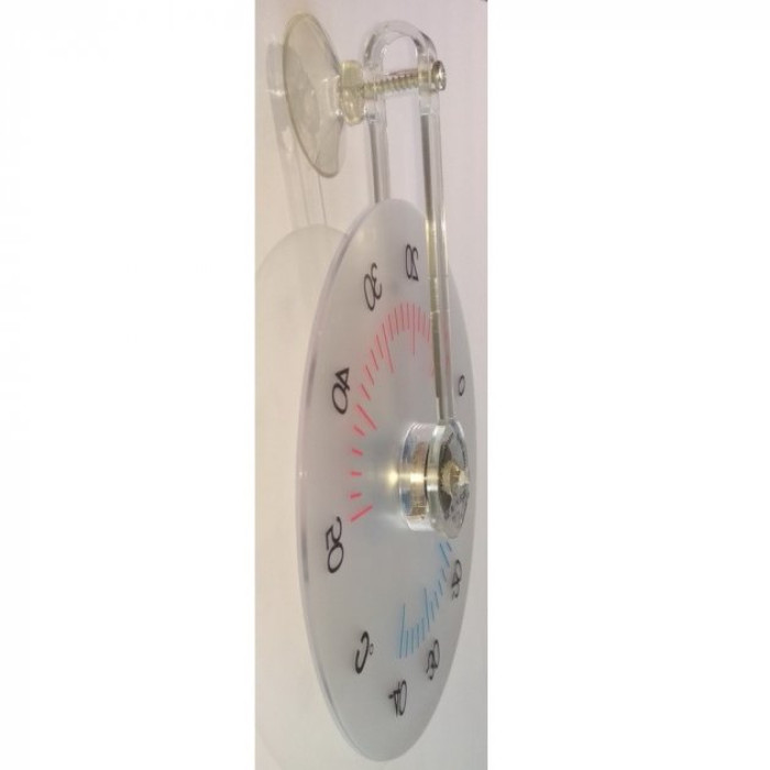 Двухцветная шкала на прозрачном термометре легко читается, не закрывая вид из окна.