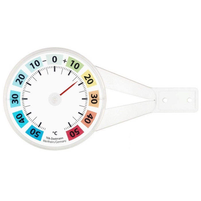 прибор на оконной раме снаружи, используя прилагаемые шурупы. Двухцветная шкала легко читается в помещении. Температура