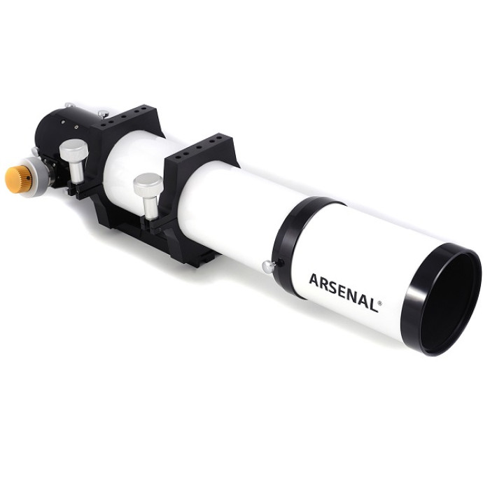 Arsenal 80ED - небольшой, компактный ED-рефрактор - отличный походный инструмент для астрофотографии. Оптика изготовлена из особого флюоритового стекла со сверхнизкой дисперсией FPL-53, что существенно снижает хроматические аберрации. Все оптические элементы выполнены с многослойным просветлением Fully Multi-Coated, края линз имеют чернение. Предусмотрены коллимационные винты для объектива. Полностью алюминиевый корпус трубы, встроенная сдвижная металлическая бленда, которая поможет предотвратить быстрое запотевание линз, и значительно увеличить контрастность изображения, особенно при наблюдениях в местах с сильной засветкой. Труба поставляется в качественном алюминиевом кейсе с полиуретановым уплотнителем для безопасного хранения и транспортировки, в котором предусмотрены также места для аксессуаров. 80 мм ED-апохромат Arsenal - замечательная оптическая труба с очень