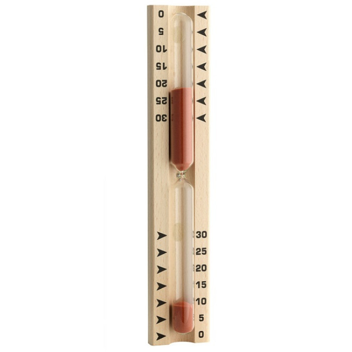 Цей пісочний годинник з масиву буку є класичним і має бути в усіх саунах. Шкала легко читається, годинник призначений для м'яких саун та інфрачервоних саун з тривалістю роботи 30 хвилин. Продукт повністю виготовлений в Німеччині. Монтажні деталі включені.
