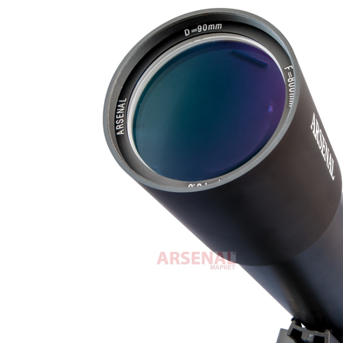 - Діаметр об'єктиву - 90 мм (фокусна відстань 800 мм, відносний отвір 1:8,8)