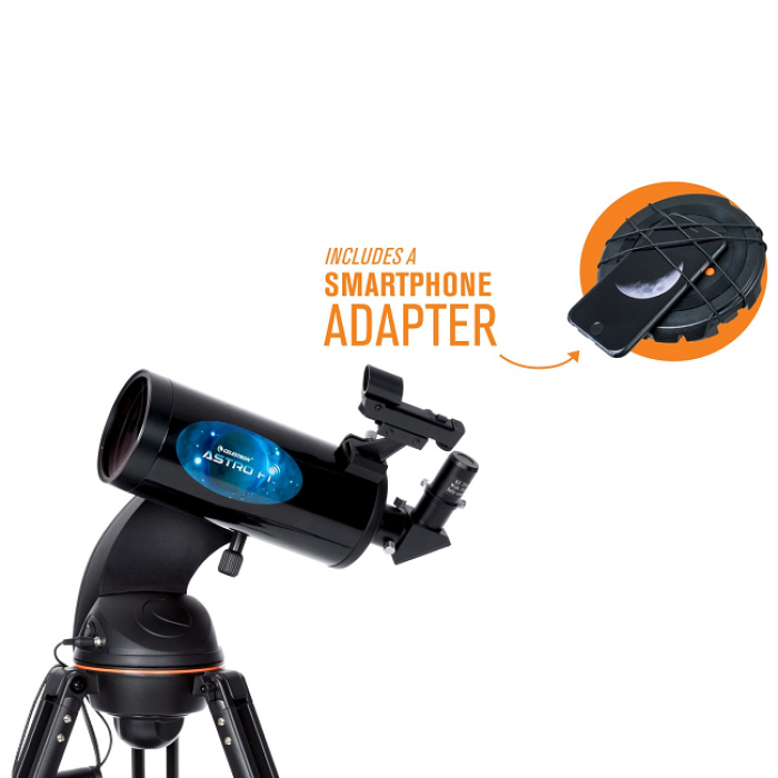 Телескоп Celestron Astro Fi 102 - це комп'ютеризований альт-азимутальний телескоп з оптичною схемою Максутова-Касегрена, що ідеально підходить для огляду наземних і небесних об'єктів. З Astro Fi відкривається чудовий вид на кратери на Місяці, кільця Сатурна, Велика Червона Пляма на Юпітері, туманність Оріона, кульове скупчення Геркулеса і багато іншого в нічний час. Налаштування телескопа дуже просте, і ви зможете почати спостереження в найкоротші терміни. Навіть в перший раз ви можете зібрати телескоп, його аксесуари і завантажити додаток SkyPortal всього за кілька хвилин. Регульовані ніжки штативу дозволяють налаштувати висоту телескопа на свій смак.