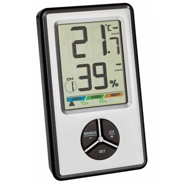 Виробник: TFA Dostmann GmbH & Co.KG, GermanyОсобливості:Висококонтрастний «Color Sharp» дисплей з трьома рівнями яскравостіАвтоматична зміна відтінків кольору (600 кольорів) в залежності від зовнішньої температури або фіксовані кольори (22 кольори)Бездротова