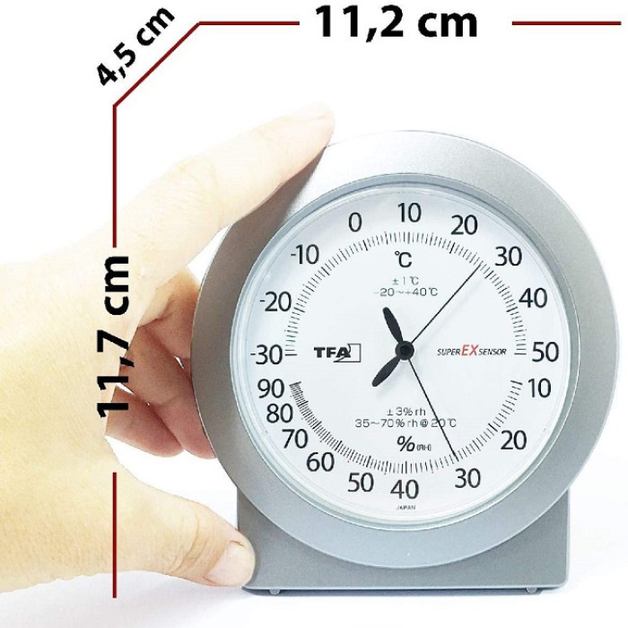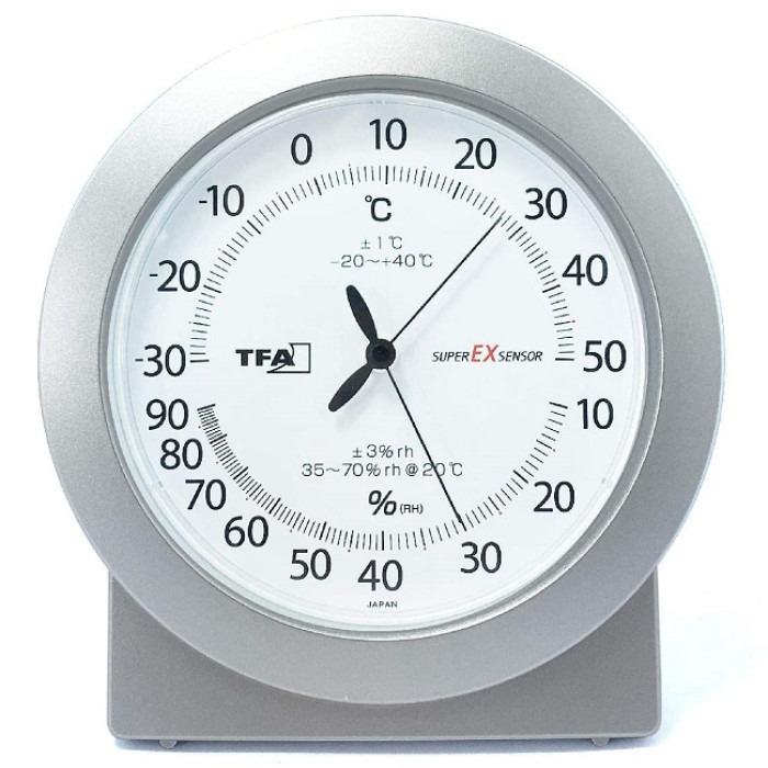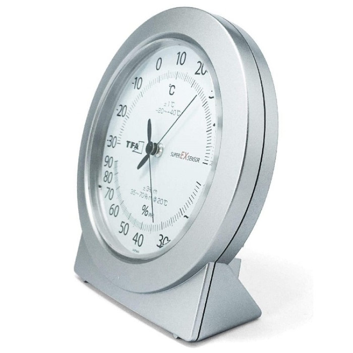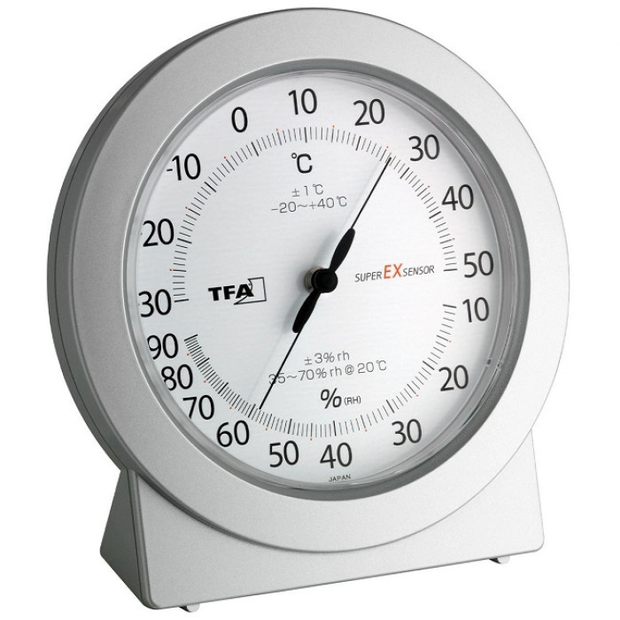 Чи почуваємось ми добре і комфортно вдома, багато в чому залежить від якості повітря в приміщенні. Дуже важливо контролювати вологість і температуру повітря у приміщенні, оскільки надто вологе повітря у приміщенні сприяє появі небезпечної цвілі; проте надто сухе повітря у приміщенні може негативно вплинути на наше самопочуття в кількох аспектах: шкіра та дихальна система можуть постраждати та зазнати впливу інфекцій, можуть з'явитися алергія та симптоми астми. Домашні тварини, рослини, дерев'яні підлоги, антикварні меблі, музичні інструменти та книги також потребують належних кліматичних умов. Якщо потрібні швидкі та точні вимірювання клімату, цей точний термогігрометр TFA є ідеальним. Завдяки вбудованому японському сенсору superEXsensor він забезпечує особливо точні значення температури і вологості і тому ідеально підходить для використання в приватному і комерційному секторі. Це забезпечує надійний клімат-контроль у житлових приміщеннях, а також у складських приміщеннях, випробувальних приміщеннях чи лабораторіях.