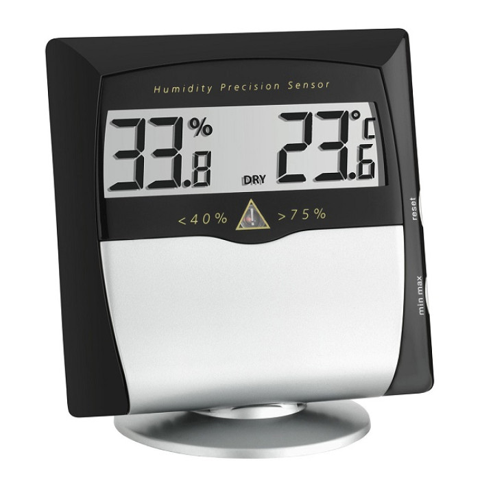 Точний датчик вологості: TFA використовує сверхвисококачественние датчики гігрометрів з точністю, доступною тільки для промислового обладнання: відносна вологість ± 3% | ± 4% (35 ... 75%), інакше ± 5%. Всі вироби з такими точними датчиками відмічені червоним знаком.
