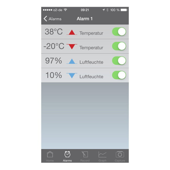 вологість. Також безпосередньо відображаються найвищі та найнижчі значення та межі активних сигналів тривоги. Функція реєстратора дозволяє