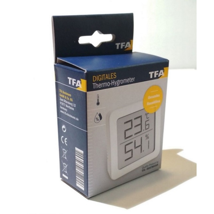Особливості: Ідеально для моніторингу клімату в приміщенні Відображення температури і вологості повітря в приміщенні Зі зйомним магнітним утримувачем для підвішування або встановлення З самоклейкою плівкою Зареєстрований дизайн TFA