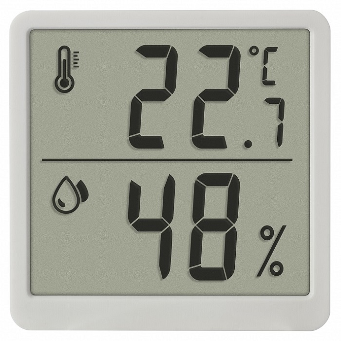 За допомогою цього практичного термогігрометра ви можете легко стежити за температурою та вологістю у приміщенні та при необхідності регулювати їх за допомогою цільового обігріву та вентиляції. Таким чином ви створите комфортне і здорове місце існування і навіть заощадите на опаленні. Більшості людей комфортна кімнатна температура 19-25°С та відносна вологість 40-60%. Цей діапазон також мінімізує ризики для здоров'я.