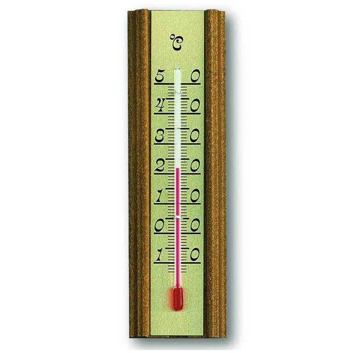 Цей класичний термометр виготовлений із масиву дуба з алюмінієвою шкалою.