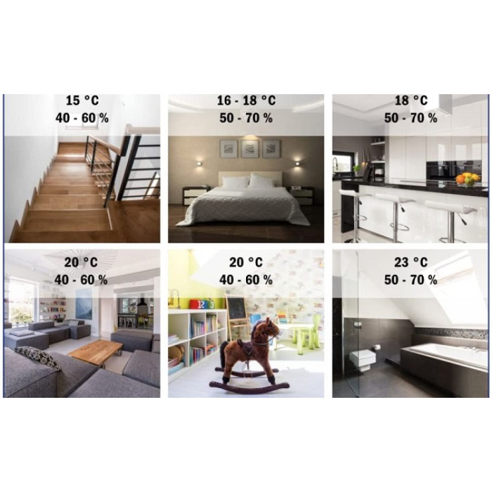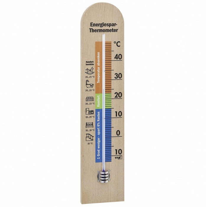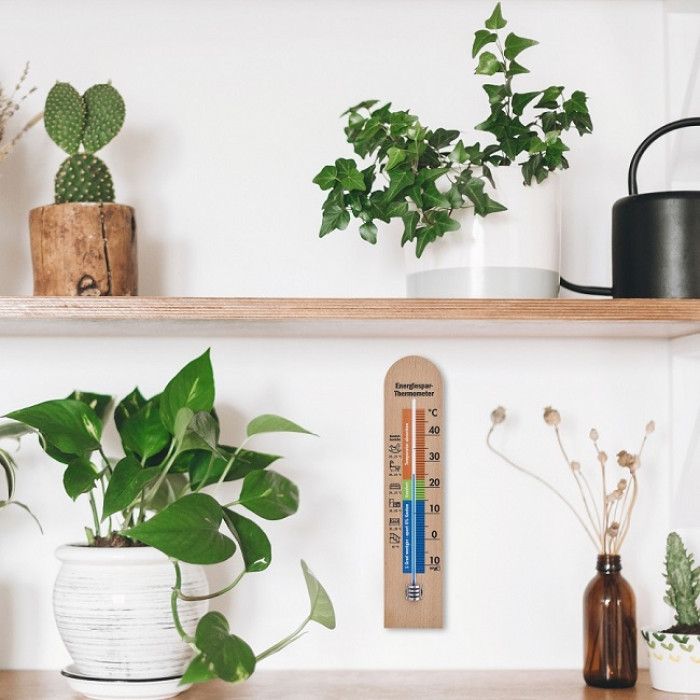 Існує великий потенціал для економії енергії, якщо опалення та вентиляція виконані правильно. Більше того, надмірно опалювані приміщення не лише витрачають енергію, а й шкідливі для здоров'я. Перевіряйте температуру в окремій кімнаті за допомогою внутрішнього термометра TFA і підтримуйте температуру в приміщенні в діапазоні нижнього рівня комфорту. Зрештою, економія енергії не означає низькі температури. Вночі ви можете трохи зменшити опалення та закрити віконниці – залежно від ізоляції вікон ви можете втратити до 20 відсотків менше енергії. Якщо ви засмикнете штори, ви все одно зменшите втрати тепла до десяти відсотків. На додаток до температури повітря також відіграє роль температура поверхонь навколишніх поверхонь, таких як вікна, стіни та стелі. Чим холодніша поверхня стіни, тим вищою має бути температура повітря для створення комфортного клімату в приміщенні.
