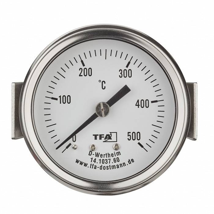 Термометр просто вставляється в попередньо просвердлений отвір (необхідний діаметр отвору прибл. 60 мм) і може бути закріплений на місці за допомогою U-подібного затискача.
