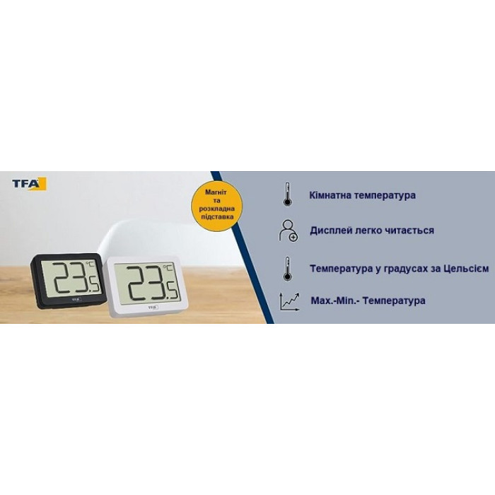 Практичний та невеликий термометр ідеально підходить для контролю температури у приміщенні: у вітальні, спальні, підвалі, майстерні, гаражі та навіть в автомобілі.