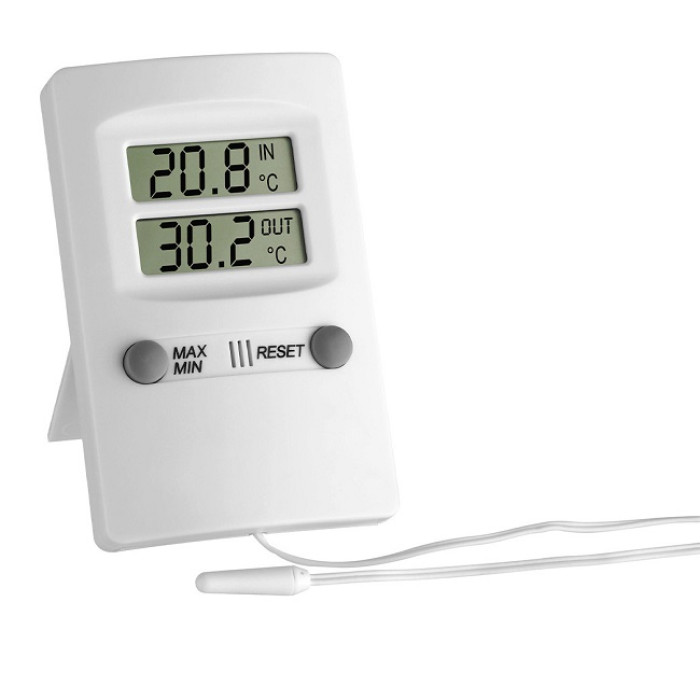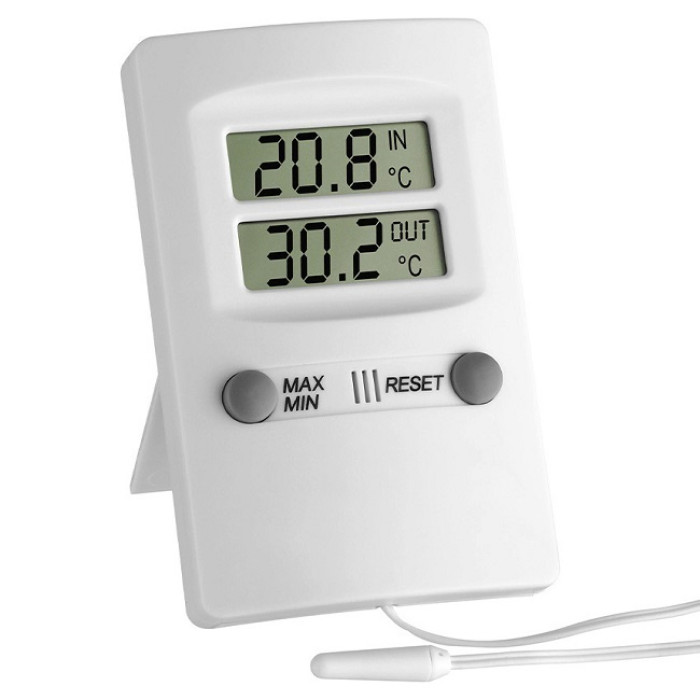 Розміщений у вікна, провідний датчик просто виводиться назовні для вимірювання температури зовнішнього повітря. Макс.-мін.