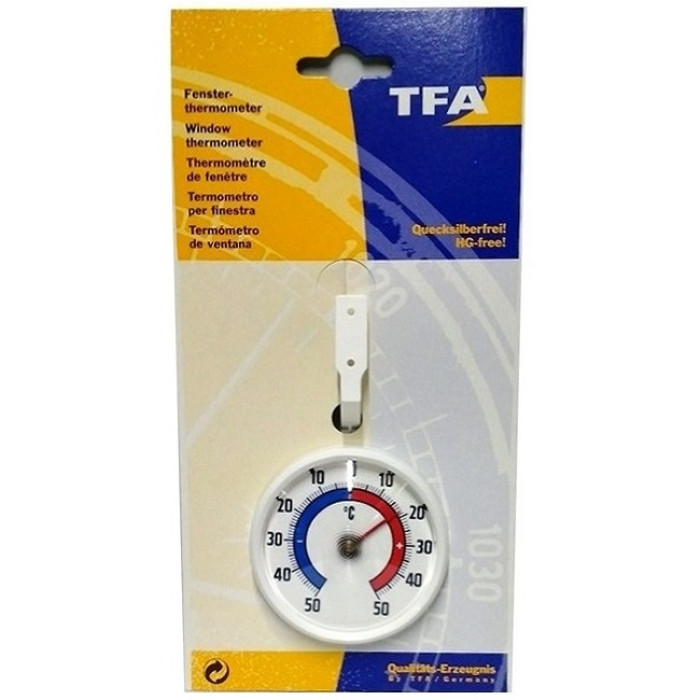 Термометр повністю виготовлений в Німеччині. З цим віконним термометром у вас завжди буде точна температура зовнішнього повітря! Просто правильно розташуйте тримач та встановіть прилад на раму вікна зовні з допомогою гвинтів. Двоколірна шкала легко читається з вашої вітальні. Температура вимірюється за допомогою перевіреної біметалевої технології.