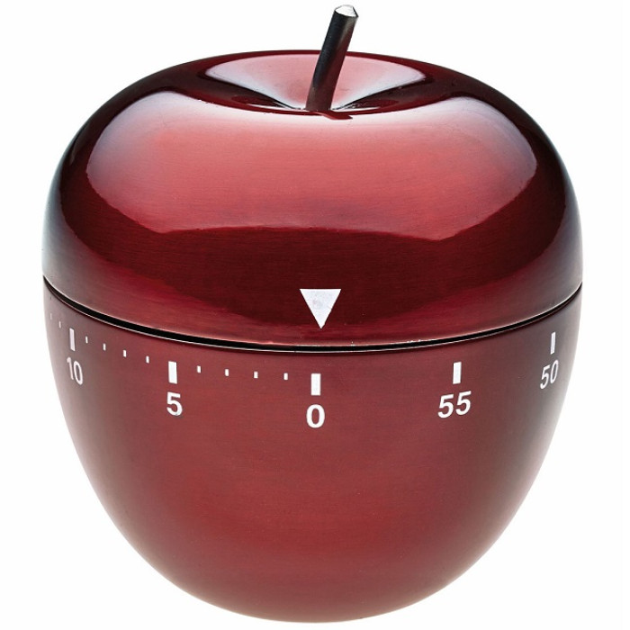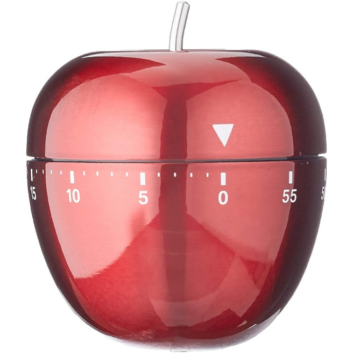 Особливості: Кухонний таймер у формі яблука Металевий заводний механізм, батарея не потрібна Плавно регулюється до 60 хвилин Звукова сигналізація після закінчення часу Корпус з нержавіючої сталі Елегантний дизайн
