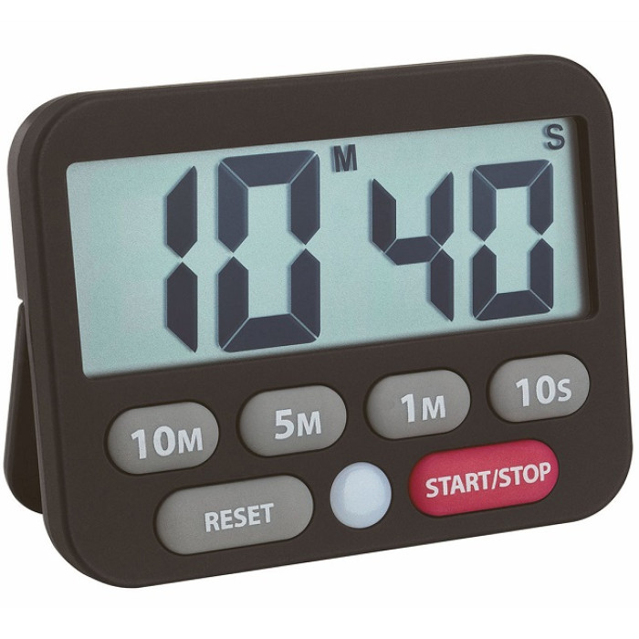 Особливості: Таймер з відліком у прямому і в зворотному напрямку Великий дисплей, який легко читається Швидке і просте налаштування часу Монтаж за допомогою магніту, підставки або підвісної петлі Надгучний звуковий сигнал (макс. 60 секунд) Макс. налаштування часу: 99 хвилин, 50 секунд Батарейка у комплекті Зареєстрований дизайн TFA