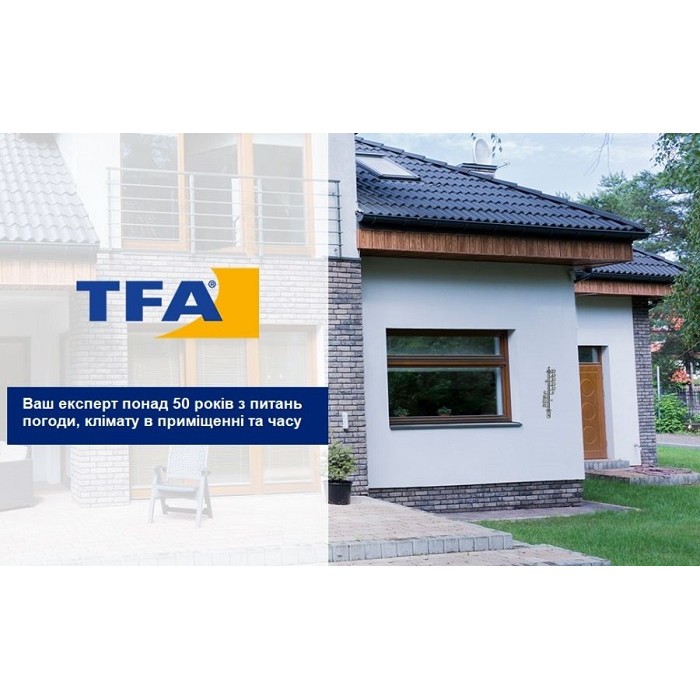 Сімейна компанія TFA Dostmann GmbH & Co.KG виробляє погодні та вимірювальні прилади на власному виробничому підприємстві в Райгольцхаймі (біля Вертгайма, Німеччина) з 1964 року або виробляє їх по всьому світу. Термометри, термогігрометри, барометри та метеостанції тепер доповнюються настінними годинниками, будильниками, таймерами, вагами та багатьма іншими корисними товарами для щоденного використання. Понад 1000 вимірювальних приладів, які надихають - від функціональних до орієнтованих на дизайн, від позачасових до сучасних. TFA Dostmann є однією з провідних компаній у цій галузі в Європі. Відкрийте для себе високоякісні інноваційні продукти для всього, що стосується погоди, клімату в приміщенні та часу.