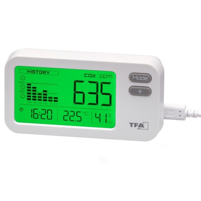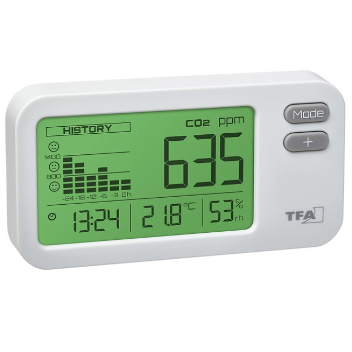 запаморочення і постійна втома часто виникають через високу концентрацію CO2 в повітрі. Вимірювач CO2 TFA «AIRCO2NTROL COACH» дозволяє