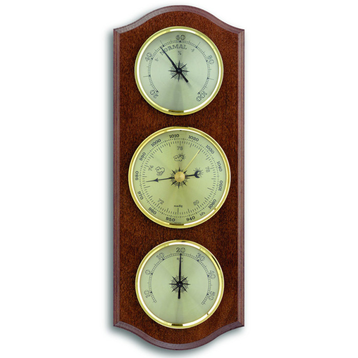 Метеостанція з масиву дерева складається з барометра, термометра і гігрометра.